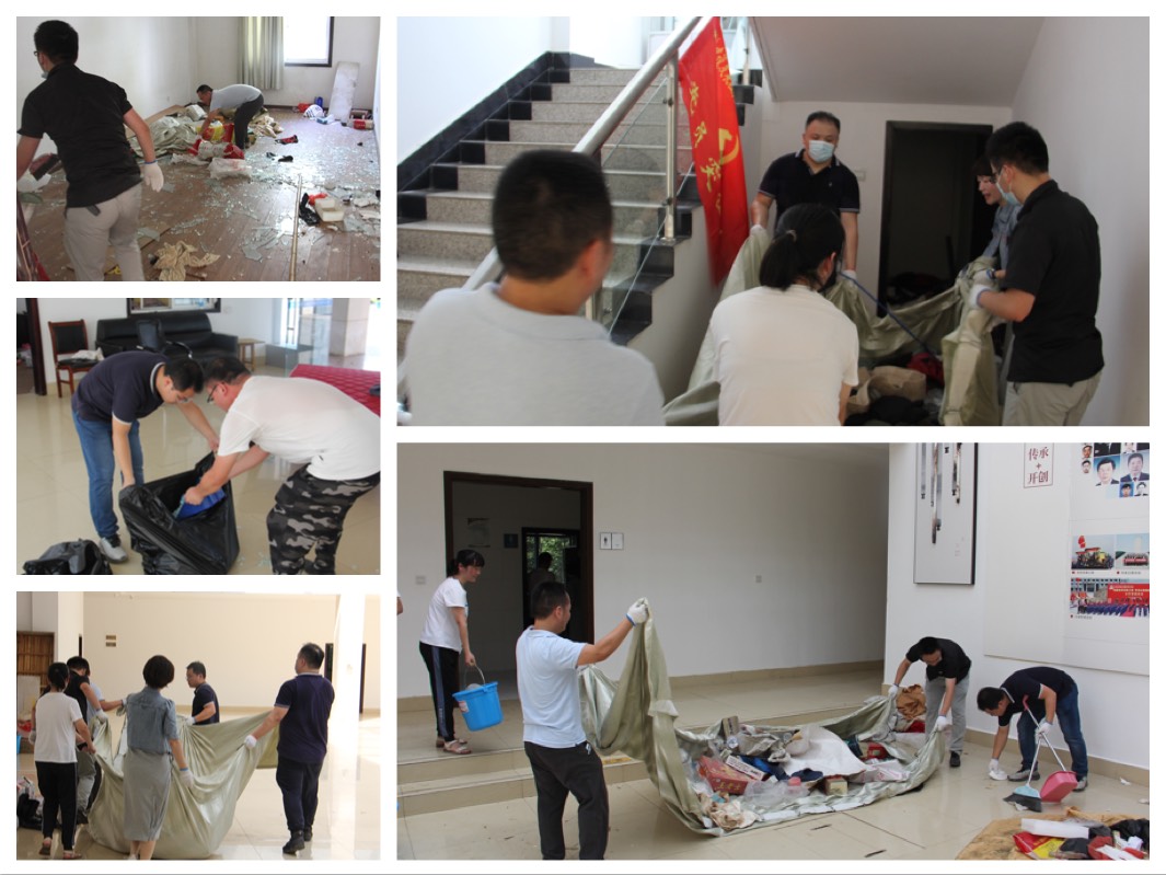 此次“黨員活動日”黨員們組織開展酒店附屬設(shè)施的集中清理整頓,對有關(guān)單位移交的辦公樓進(jìn)行全面清理,為酒店建設(shè)人員現(xiàn)場辦公提供條件。經(jīng)過簡單籌劃安排,各黨支部黨員、預(yù)備黨員、發(fā)展對象和入黨積極分子們結(jié)成臨時工作小組,實(shí)行任務(wù)包干,對辦公房、樓梯間、食堂及大廳區(qū)域進(jìn)行全面整理,在面對體量大、難度高的“硬骨頭”時,黨員們更是大力發(fā)揮出了突擊隊的沖鋒精神,搶在前干在前,揮汗如雨、不怕臟累,經(jīng)過近一個上午的集中攻堅,累計整理出20余間工作間,清理的垃圾雜物堆如小山。