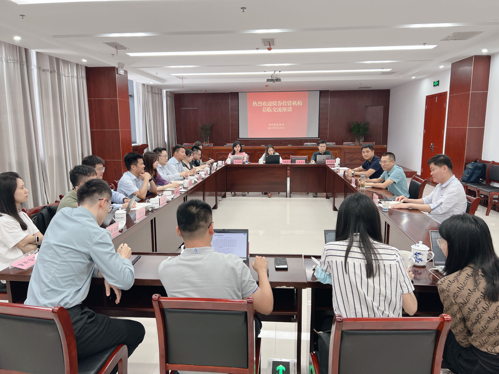8月29日下午,浦發(fā)銀行淮南分行副行長(zhǎng)楊玉帶隊(duì),證券公司、基金、資管、理財(cái)?shù)冉?0家債券投資機(jī)構(gòu)到訪淮南建發(fā)集團(tuán),集團(tuán)公司黨委委員、副總經(jīng)理欒冰冰主持接待。